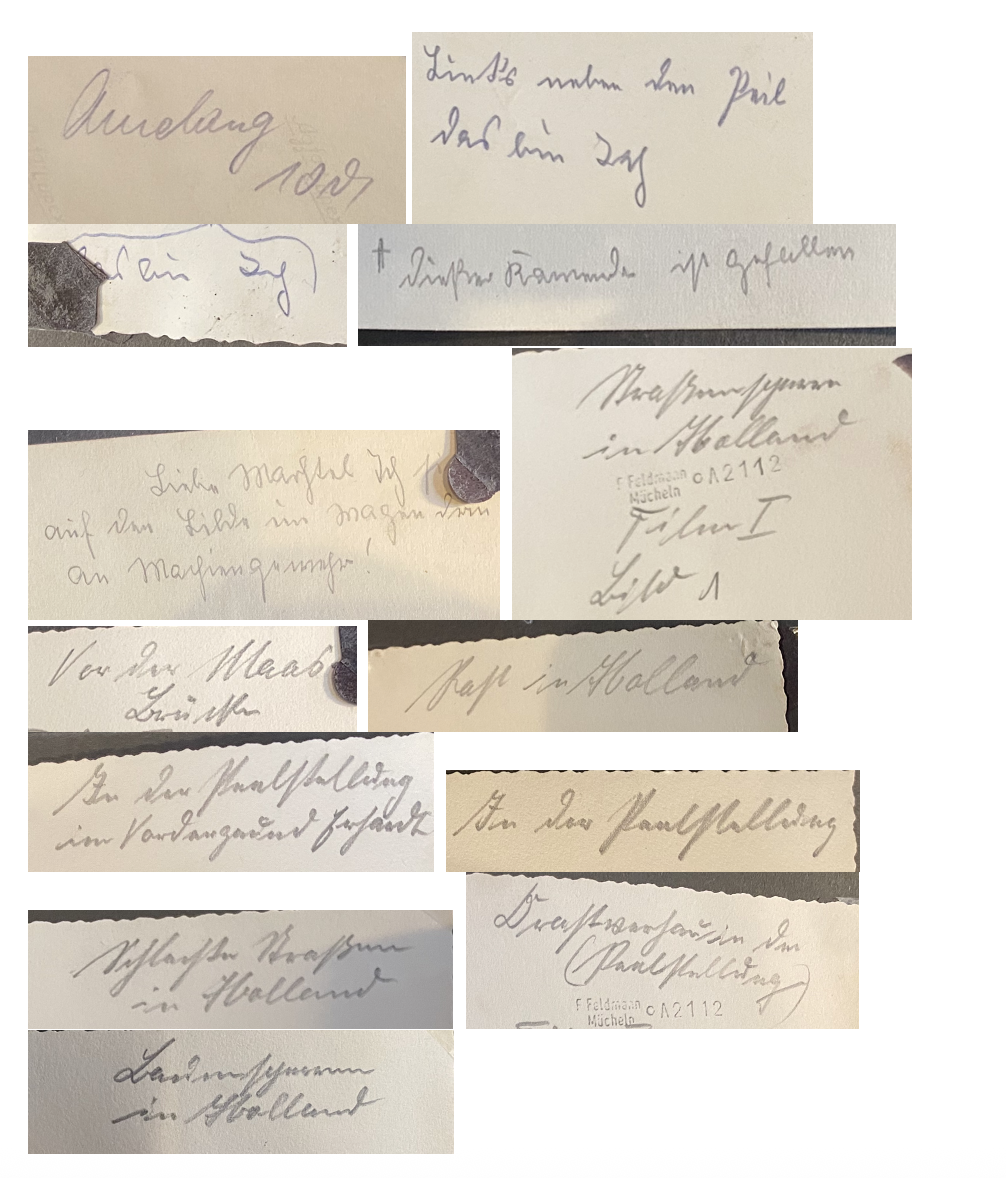 In het fotoalbum met bijschriften in Sütterlin, waarbij ik eerder al veel hulp heb gekregen via dit forum, heb ik net ontdekt dat er ook aanvullende informatie op de achterkant van sommige foto's is geschreven. Als iemand me zou kunnen hulpen bij het vertalen hiervan, heel graag! De enige tekst die ik zelf heb kunnen ontcijferen is 'in Holland'. Alvast hartelijk bedankt. Met vriendelijke groet, M.