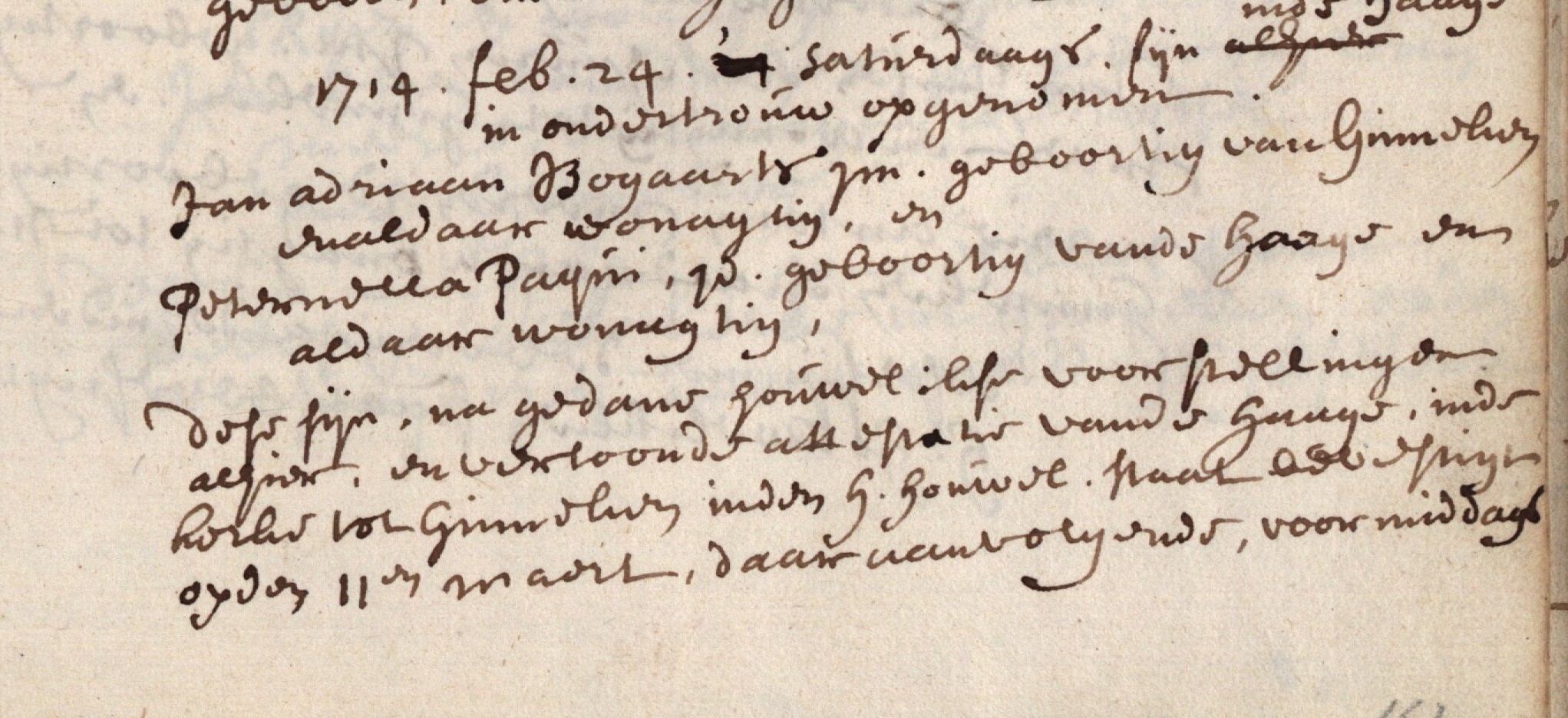 Peternella Paqui j(onge)d(ochter) geboortig vande Haage en