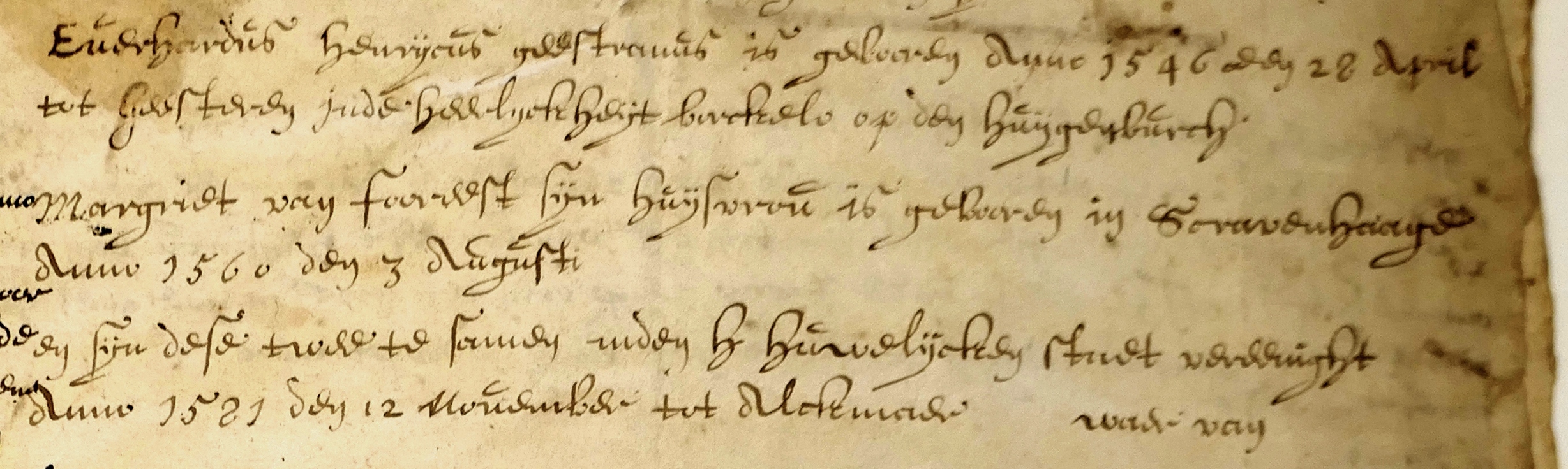 Mijn voorouders Everhardus Geesteranus en Margriet van Foreest trouwden in november 1581.