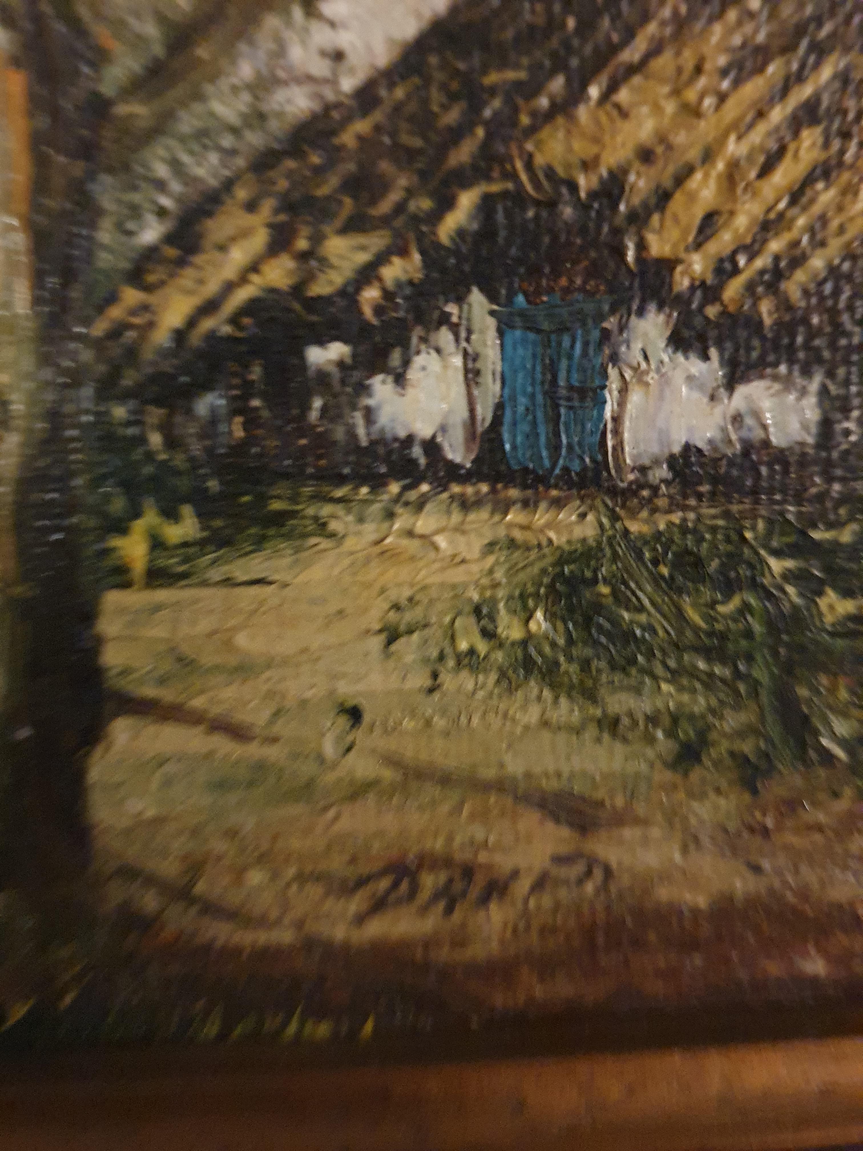 Kunsthistorie is niet helemaal mijn ding, maar ik vermoed dat het geen Oosteuropese naam is. ik vermoed dat de achternaam de la Haye is. Er zijn ook schilders uit de 16e en 17e eeuw met deze achternaam, maar op basis van het beeldfragment lijkt het schilderij moderner dan dat. Wellicht zet dit kunstkenners op er]en spoor :)