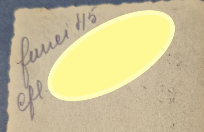 Ik probeer de (Engelse) tekst in de afbeelding te ontcijferen die voor een naam staat. Oorspronkelijk dacht ik dat de tekst bovenaan i.c.m. 45 naar een datum zou verwijzen (February?), maar dat lijkt er niet te staan. Het tweede stukje tekst interpreteerde ik oorspronkelijk als 'cpl' (corporal), wat zou passen bij de militaire context, maar ook daar twijfel ik nu over. Lijkt het niet meer op een 'f' dan een 'p'?
