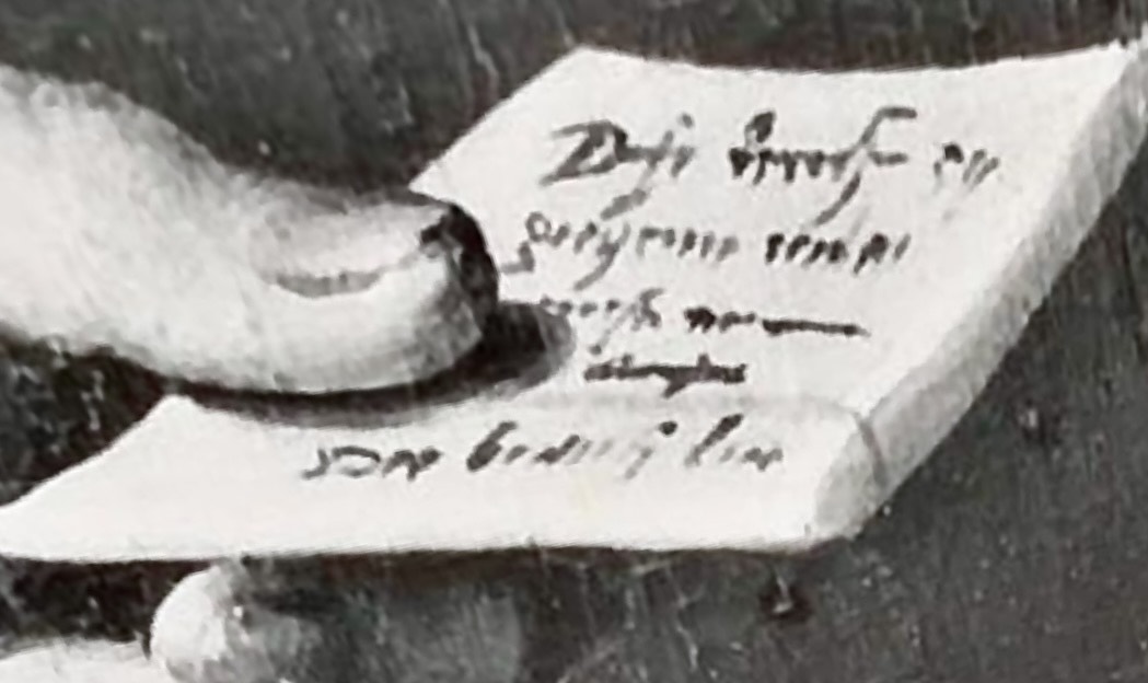 Thanks also for the copy of the portrait Rene. I was lucky enough to see the original in The Hague yesterday. I took the close ups of the note using my phone, but the note is on an angle in the portrait as you can see, so it was difficult to get a good shot.
