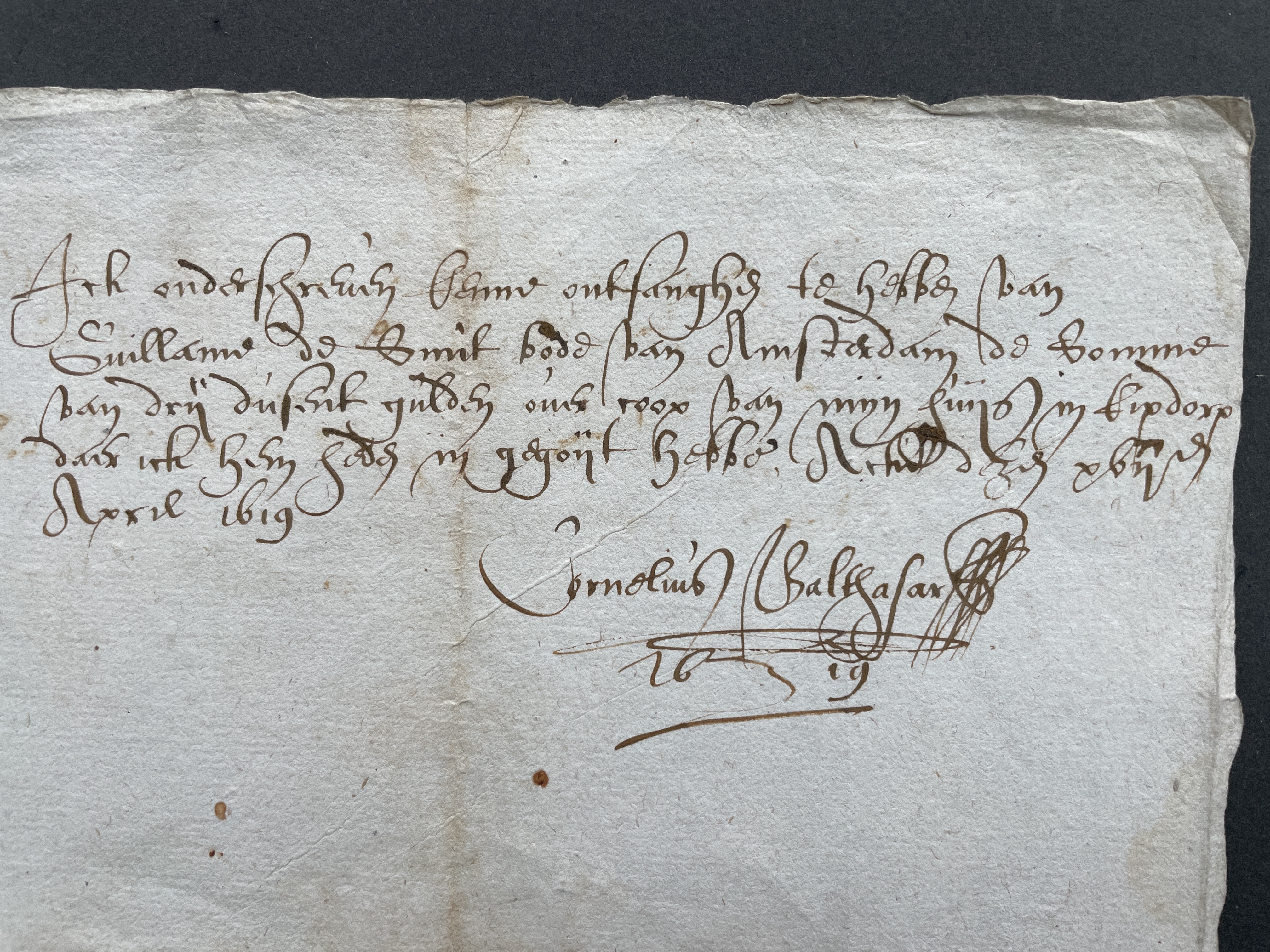 Wij Aert Schoyt ende Charles Sanctal Crux, schepenen van Antwerpen, maecken condt dat voor ons quamen Cornelis Balthazar Cornelis sone wijlen