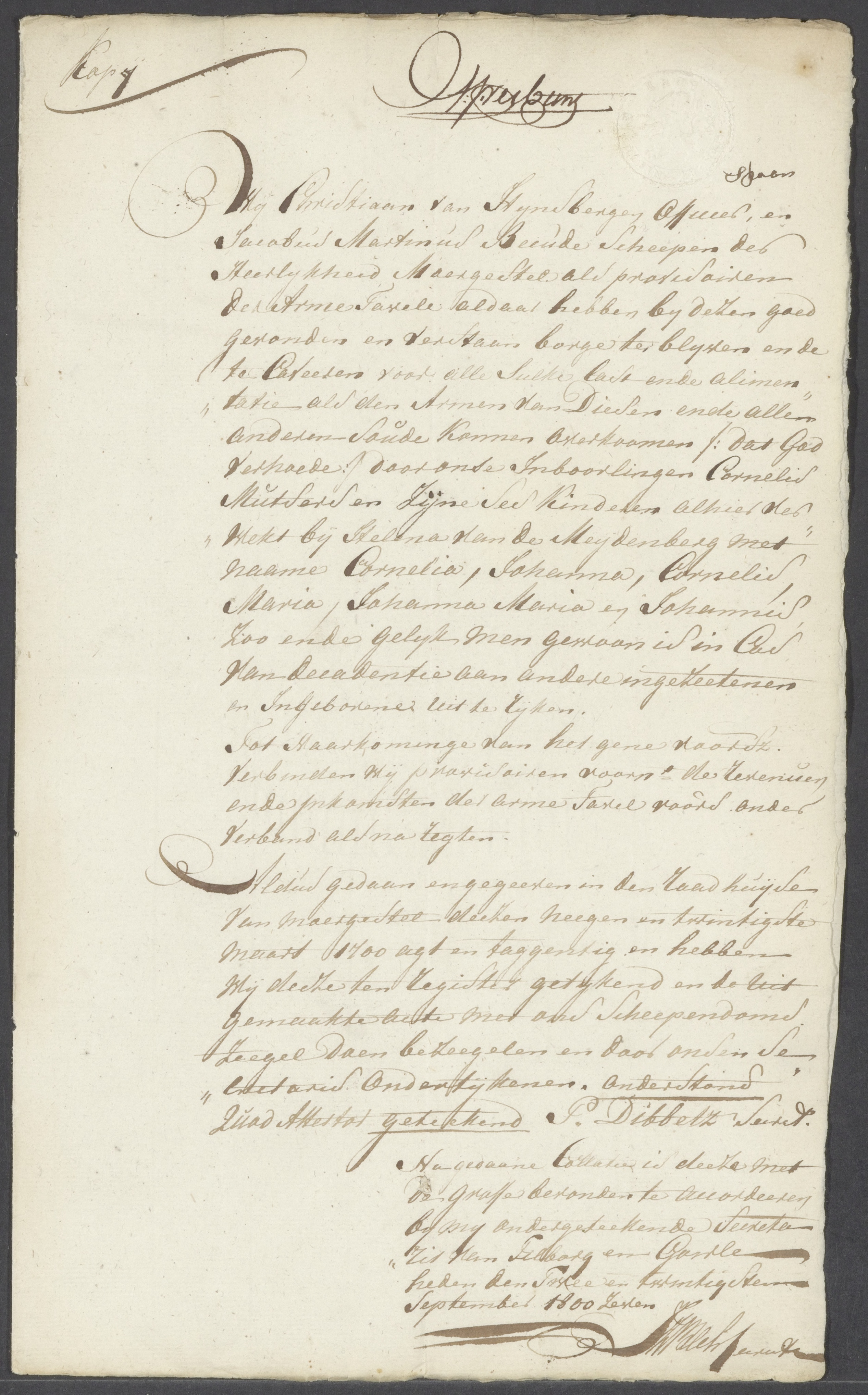 Quod attestor geteekend P. Dibbetz Secrets.