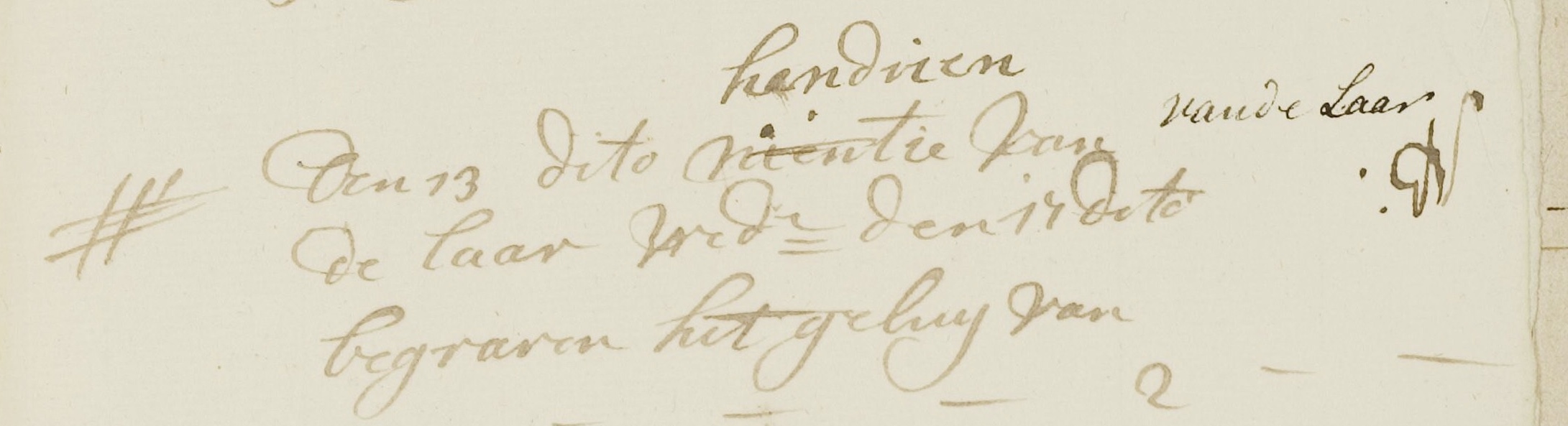 Nientie van de Laar,. doorgehaald en erboven geschreven: Handrien.