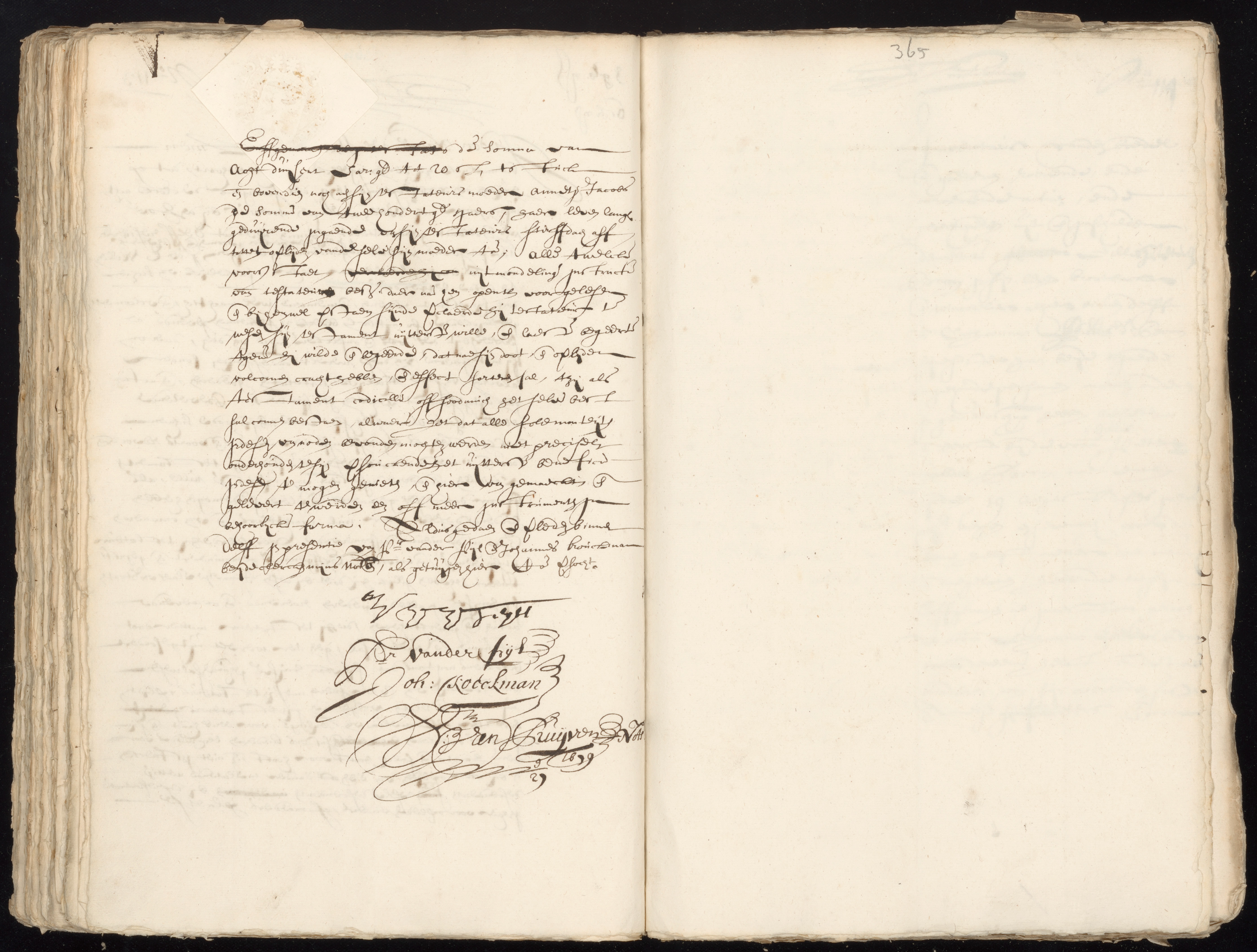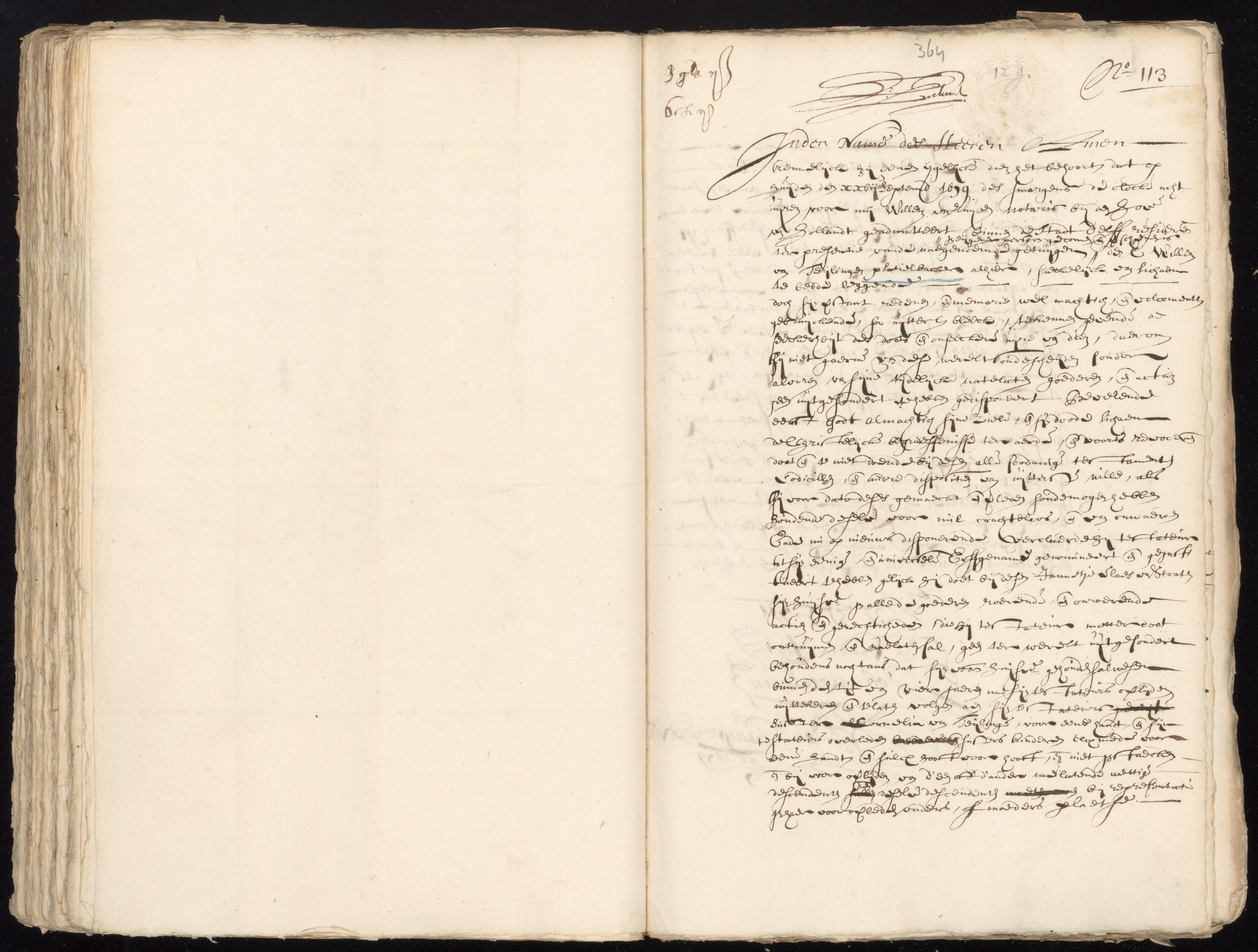 It is the last will of Willem van Teijlingen, pottery baker, who is ill and laying in bed, but sound of mind. He declares his sole and universal heir to be his wife Jannetge Claes van Straten. She will however be held to pay a sum of 8000 Carolus guilders, equally divided between her sister-in-law Cornelia van Teijlingen and the children of another sister-in-law already deceased, this sum to be paid within four years after the death of Willem.