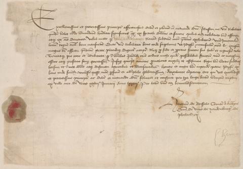 Zeer verheven en machtige vorst, toegenegen en geliefd en daarom het meest te achten heer. Aan uw roemrijke edelmoedigheid vertrouw ik mij toe, zoveel ik kan; u nederig bekendmakend, dat ik, vanwege de bijzondere trouw en gunst waarmee ik word vervuld door uw edelmoedigheid en aan wie ik met mijn ziel toegewijd ben, u door de bezorger van deze brief, Hendrik Adriaansz., zeeman, mijn onderdaan, een jonge leeuw zend, een koninklijk dier, goed getemd. Ik smeek u in uw edelmoedigheid, vanuit een goed hart, dat u zich zal verwaardigen juist dit geschenk van mij, hoewel uiterst klein, maar wel aangeboden met grote genegenheid, te ontvangen met vreugde en instemming en dat u mij als trouwe en eeuwige dienaar wil beschouwen en erkennen. En dat u het moge beschouwen als vaststaand en niet aan twijfel onderhevig, dat ik mij in alle dingen, hoe moeilijk ook, voor zover het voor mij mogelijk is, mijn dienstbaarheid en mijzelf aanbied en dat ik mij daartoe altijd zeer bereidwillig toon. Bovendien, wat ik ook maar aan de bevordering van vriendschap, hulp en bijstand aan de onderdanen van uw koninkrijk Schotland die naar hier komen en die in mijn gebied en district verblijven, zal kunnen geven uit eer en genegenheid tot u, zal ik ditzelfde vanuit een goed hart met mijn gehele vermogen volbrengen en zeer graag vervullen. Dit met hulp van de almachtige God, die u, zeer verheven en machtige vorst, tevens geliefde en te achten heer, moge weldoen en gezegend moge bewaren voor lange tijd. Haastig geschreven vanuit mijn landgoed in Veere, 27 januari in het jaar 1474, door de geheel uwe en welwillende dienaar