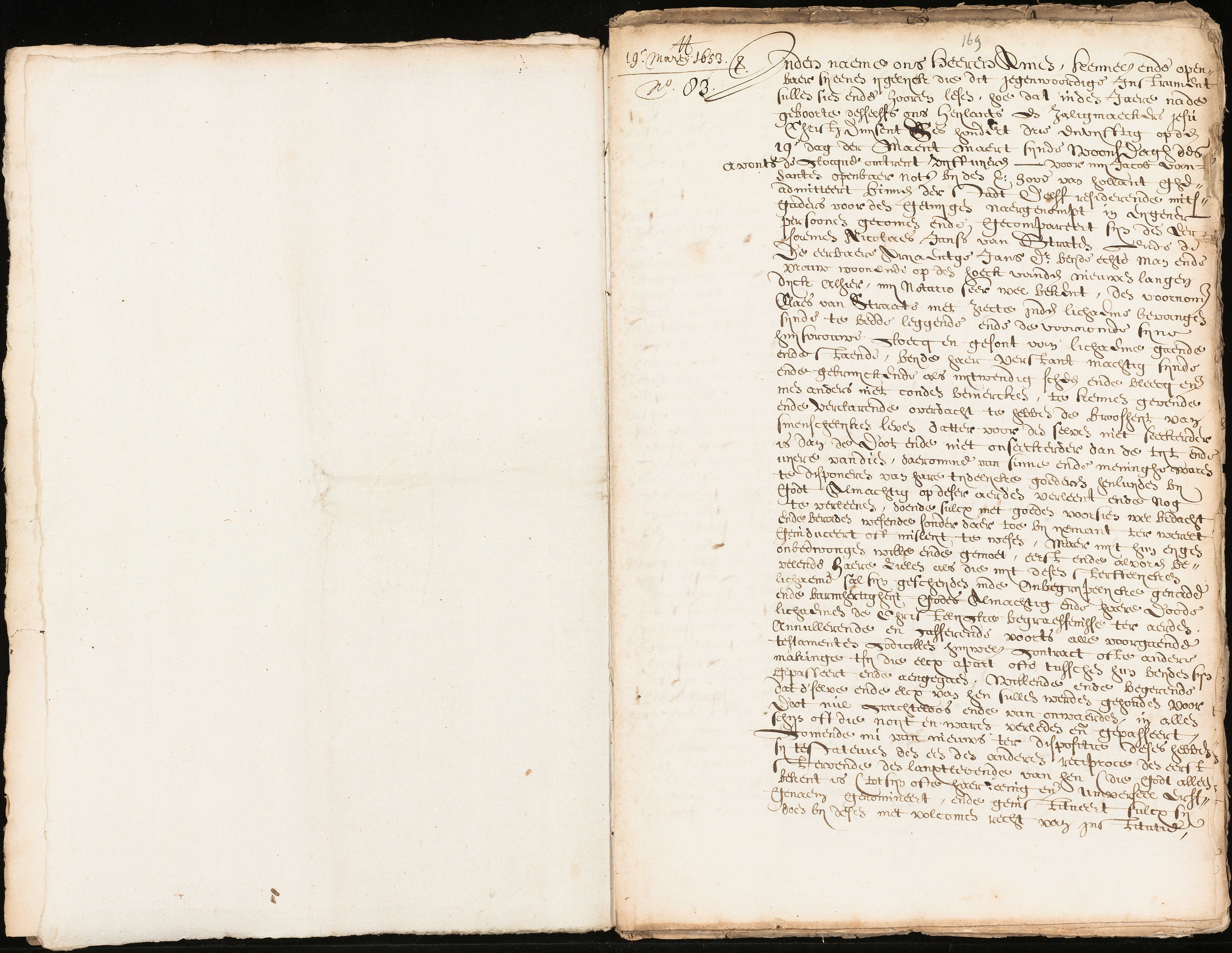 It is a mutual will of Nicolaes Jansz van Straeten and his wife Aryaentgen Jansdochter. The document was signed at the home of this couple, because Nicolaes was 'caught with a bodily illness and lying in bed', his wife however still in good health. The end of the will even specifies the location of the signing very detailed: 'before the sickbed of the male testator in the front part of the house in a small sideroom'.