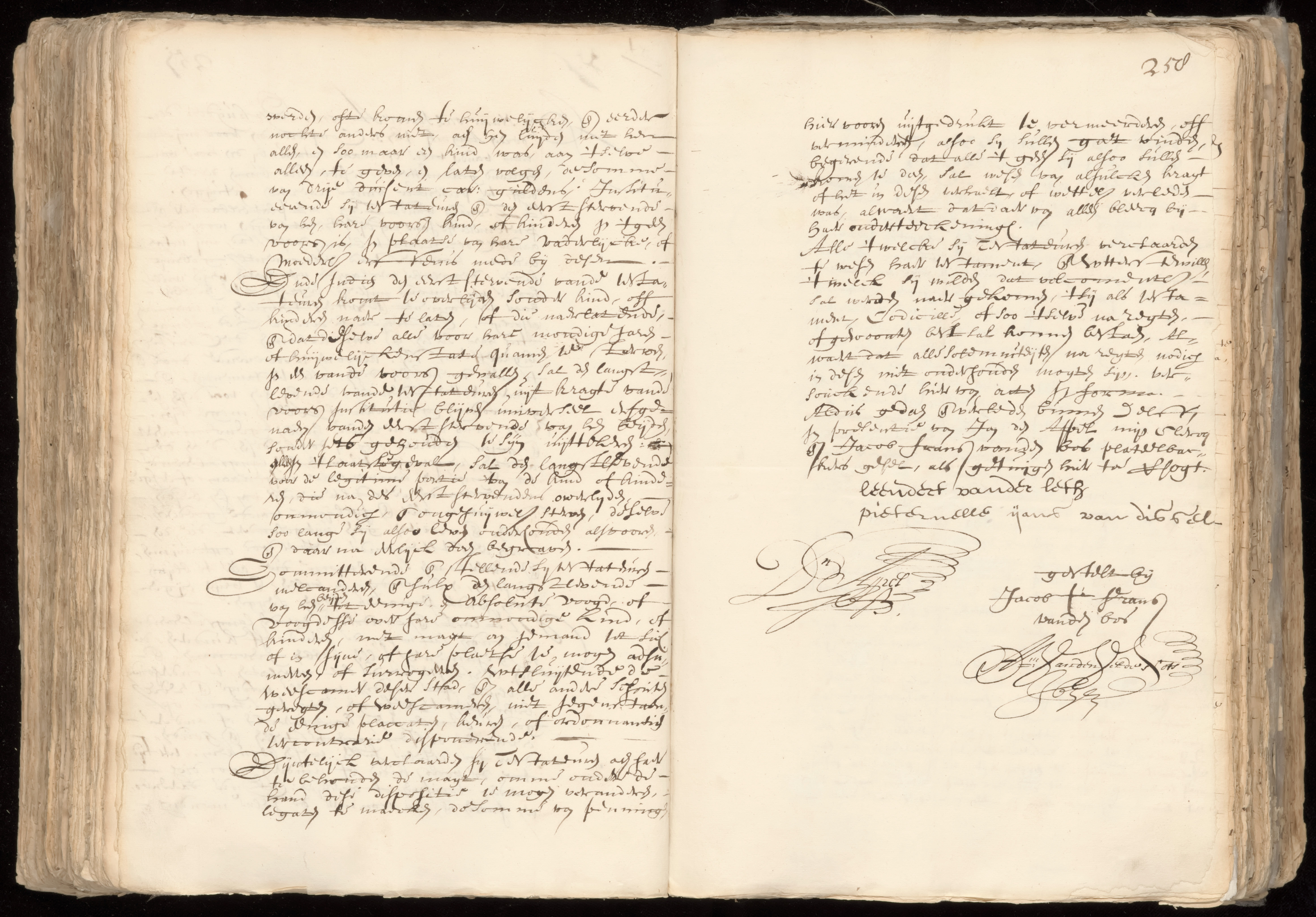 This mutual and reciprocal will is composed at the request of Seigneur (a title often used to address people who have a certain social/financial status) Leonard vander Leth, master potter and his wife Pieternelletje Jans van Dijssel, living at the Koornmarkt in Delft. They mutually appoint each other as the sole heir if one of them would die. The surviving spouse will be held to raise their children until those children will have be come of age, or will marry, or will be deceased. Once the children will have come of age, or will marry, the children still living then will jointly receive a sum of 3000 guilders. If all children would die before the death of the surviving parent, the surviving parent will become the sole heir of the entire inheritance. They also mutually appoint each other as legal guardian of their children in case one of both would die. Furthermore, the couple reserves the right to change (increase or decrease) the amount of the inheritance as they may see fit. The will is drawn up in the presence of witnesses Jan den Appel, clerk of the notary, and Jacob Frans van den Bos, potter.