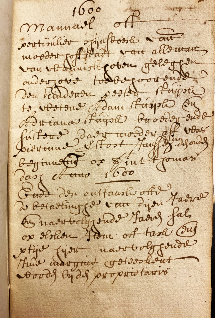 Handboek of specifiek cijnsboek van de cijns die geheven werd vanuit de moederhofstad genoemd Alleman (of Halman) van Wanninckhoven, die gelegen was op het grondgebied van Hove, toebehorende aan Adam en Adriana Sluijck, broer en zus en beiden kinderen van Peeter Sluijck en wijlen Pierinne, dochter van Jan Versloot senior. Dit cijnsboek begint op Sint Thomas-dag (3 juli) 1600.