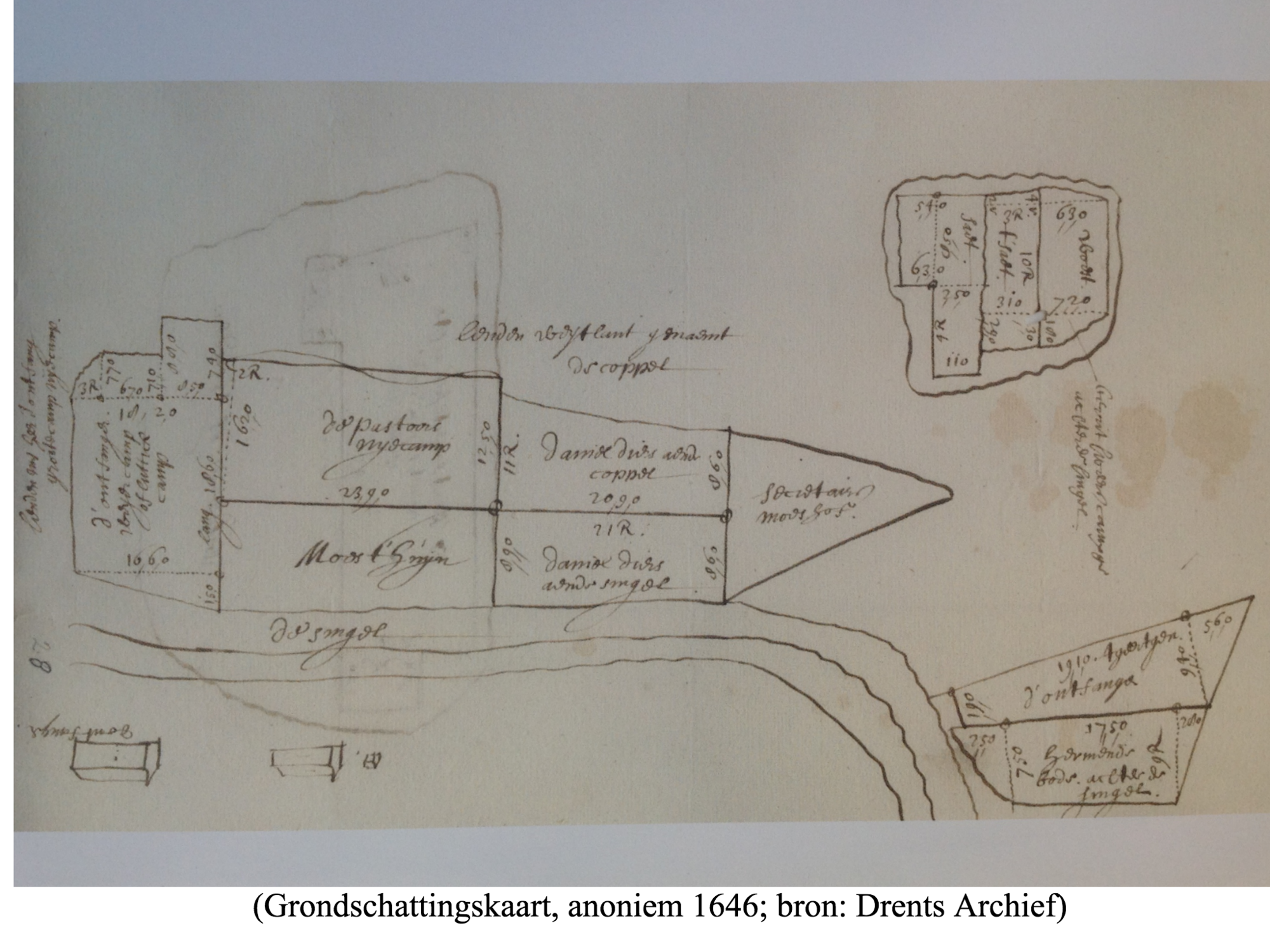 Rechtsboven staat nog een kleine plattegrond van een (moes)tuin met twee delen saet en een deel woest.