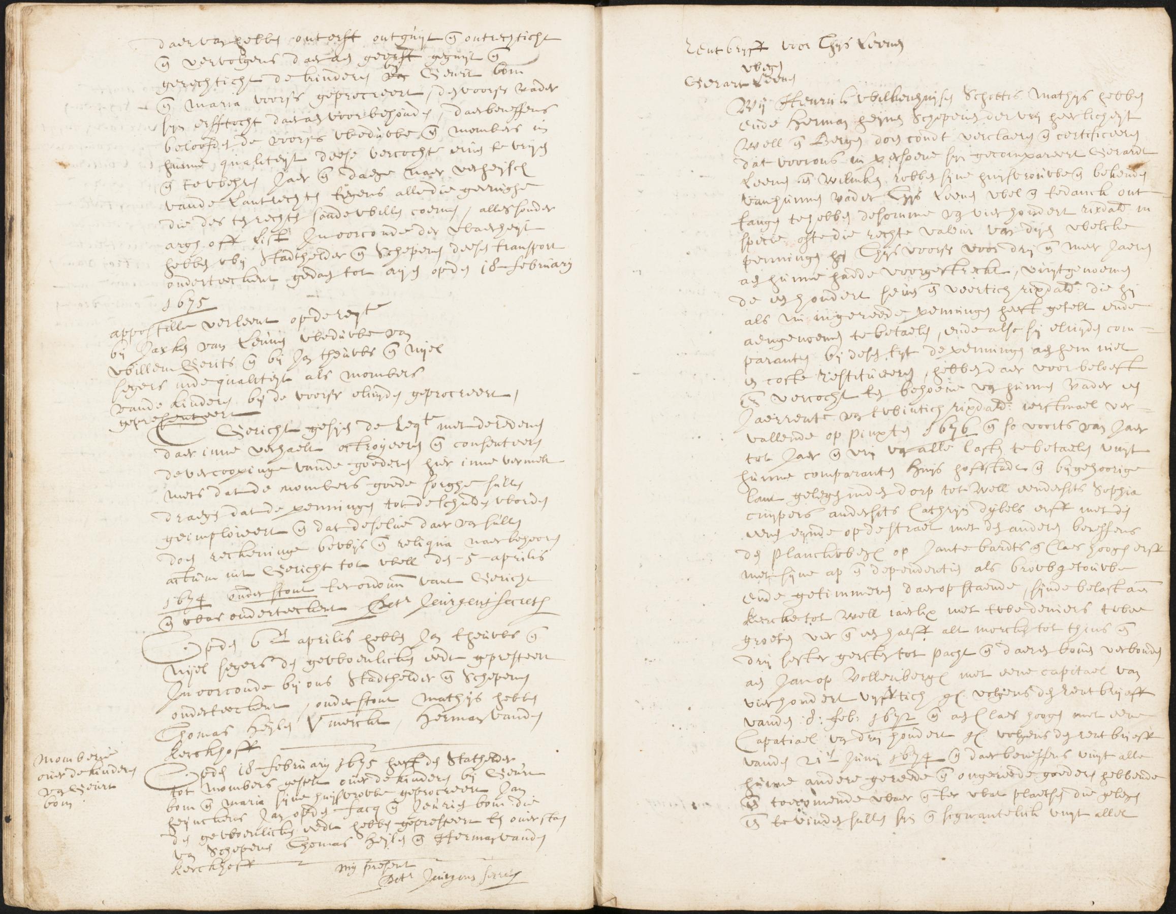 Ik heb nog een vraagje. Het stukje tekst hierboven (dat ik als op zichzelf staand heb geinterpreteerd) is waarschijnlijk het sluitsluit van een stukje tekst, dat begint onder het jaartal 1675. Als je dat kunt beamen, zou je van dat gedeelte dan ook nog een transcriptie willen maken. Vast bedankt voor de moeite. Groet