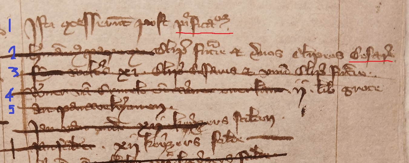 ik heb hier een moeilijk leesbare txt (14e eeuw) in het latijn. De pagina bevat een lijst met namen, waar achter betaalde gelden. Ik heb moeite het woord in regel 1 door de scriba genoteerd als een abbreviatuur, te ontcijferen, met rood onderstreept. Misschien kan iemand van jullie helpen? Elke suggestie is welkom.