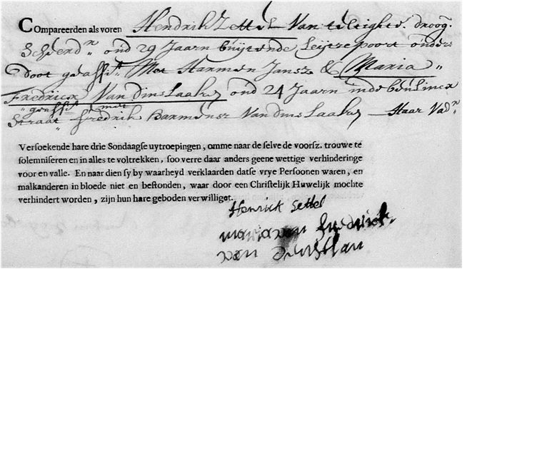 straaet, geassisteert met Frederik Harmensz van Dinslaaken, haar vader.