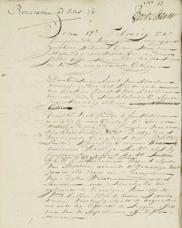 Voor zover ik het nu kan lezen betreft dit een machtiging (procuratie), verleend door Arent van Adrichem, wonend te Woudsend en door Cornelis van Adrichem, wonend te Honselersdijk, aan Johan Willem Bertrand, procureur voor de vierschaar (rechtsprekend college) van Delft. Zij verlenen hierbij aan hem machtiging om namens hen op te treden en te handelen in een zaak die zij kennelijk hebben lopen tegen Symon van Adrichem, woonachtig te Wateringen. Waar deze zaak betrekking op heeft, wordt niet in dit stuk vermeld.