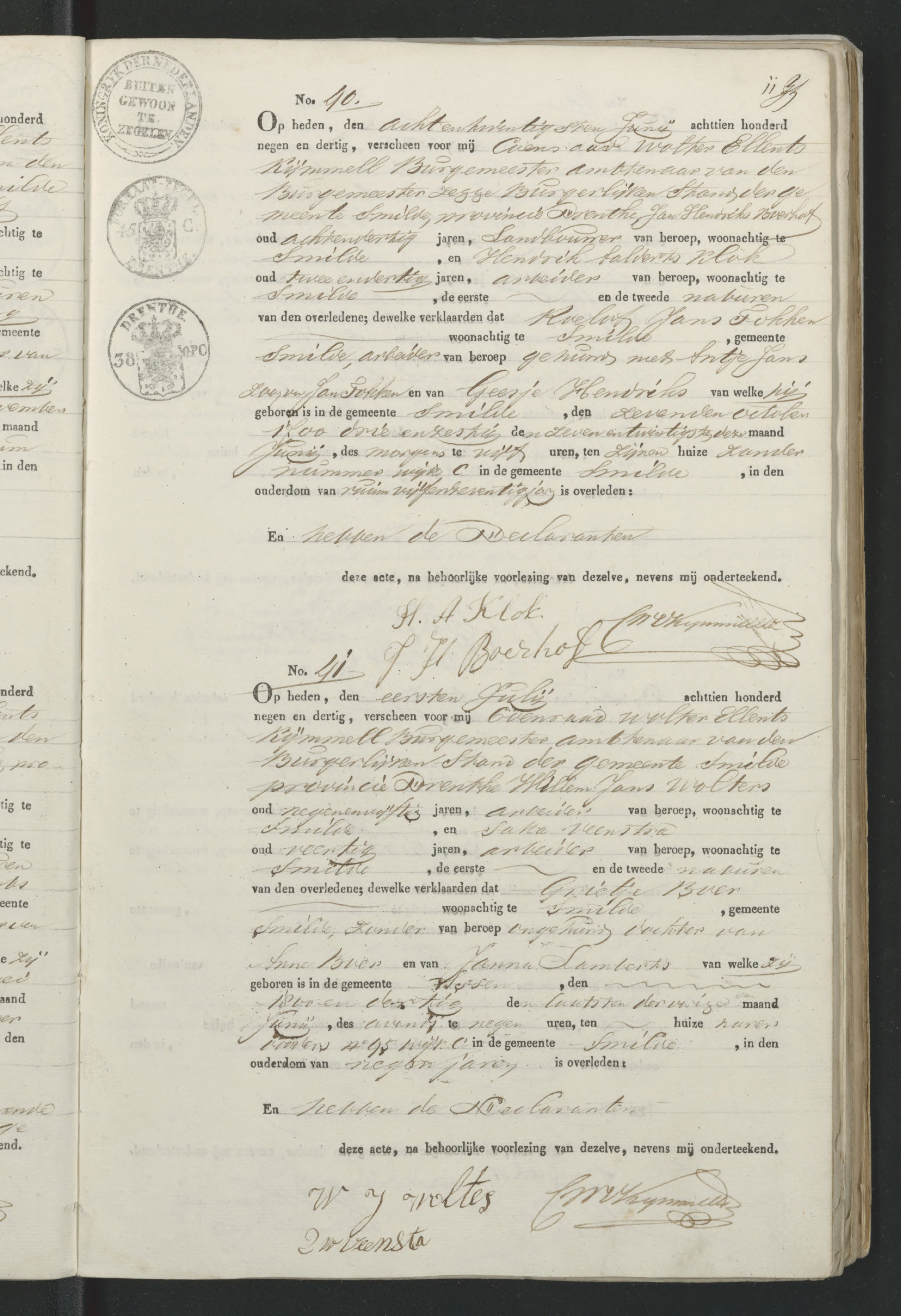 Bedankt voor het bijvoegen van de gehele akte Evert. Daarin staat niet vermeld dat de ouders van de overledene in Assen woonden ten tijde van het overlijden. Wel dat de overledene Grietje Boer toen zij overleed woonde in Smilde, en zij GEBOREN is in Assen in 1830. Het overlijden vond volgens deze akte plaats in het huis van haar ouders / vaders in Smilde, wijk C., nummer 95, op 30 juni 1839.