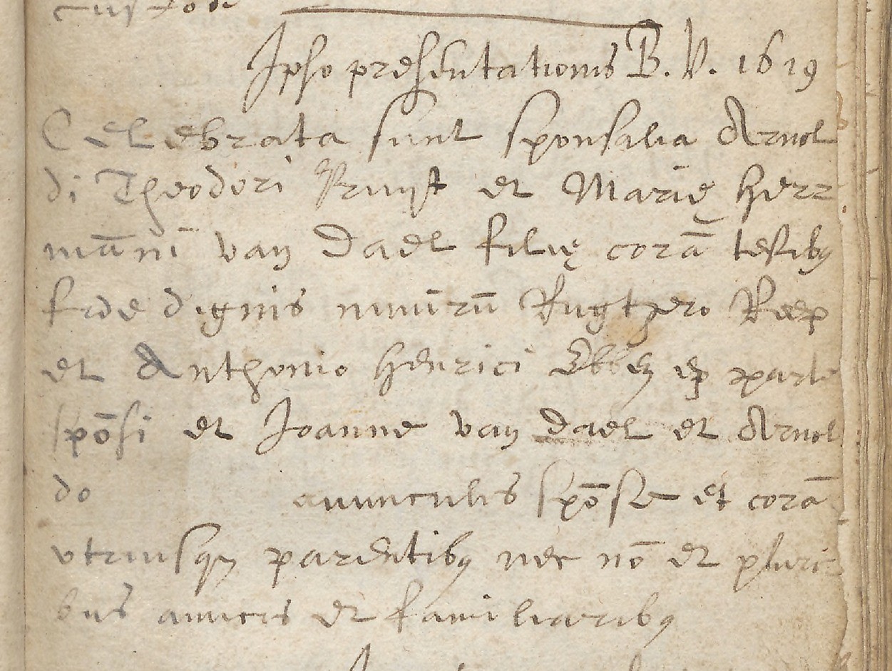 Op basis van de huwelijksdatum moet het jaar in de ondertrouwinschrijving 1619 zijn (hierboven).
