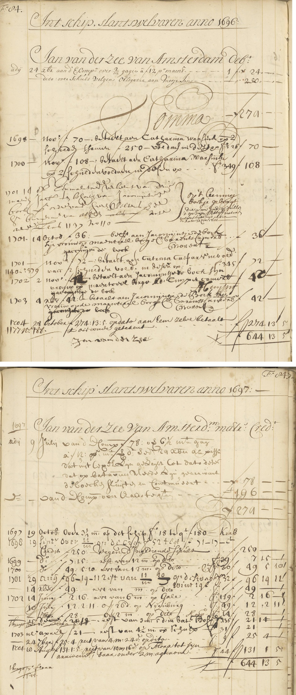 1698 […]x f 70— betaelt aan Catharina Warsink op [ …] […]