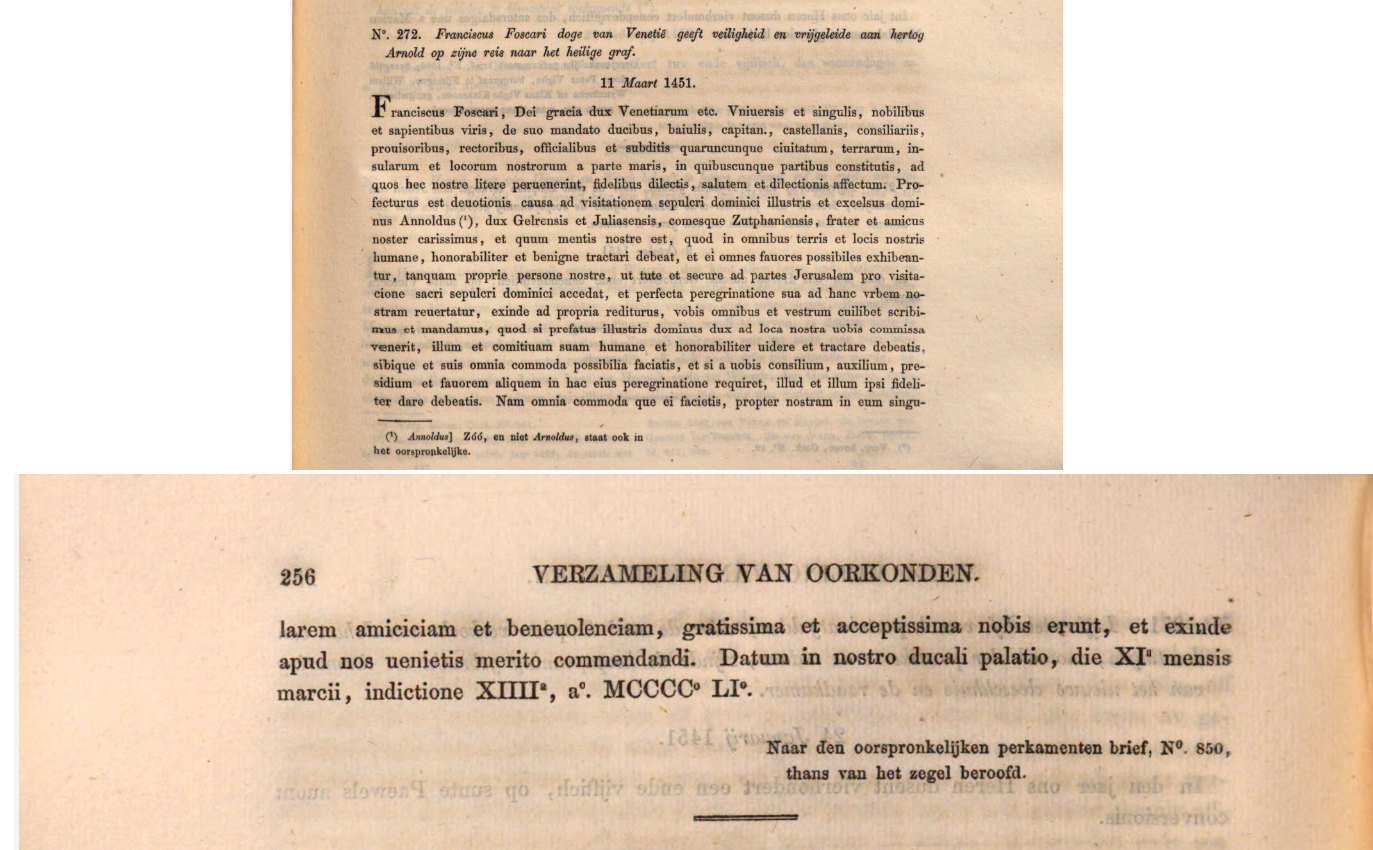 Beste Carina, bij de inventaris van de archiefcollectie van de graven en hertogen van Gelre bij het Gelders Archief staat een verwijzing naar de editie van deze oorkonde in de Gedenkwaardigheden van I. Nijhoff, deel IV, [1847] nr. 272 (blz. 254-255); de online inventaris verwijst zelfs naar een compleet overzicht van alle teksten die Nijhoff uitgaf in zijn bronneneditie. Hier een snelle scan uit een digitale versie...