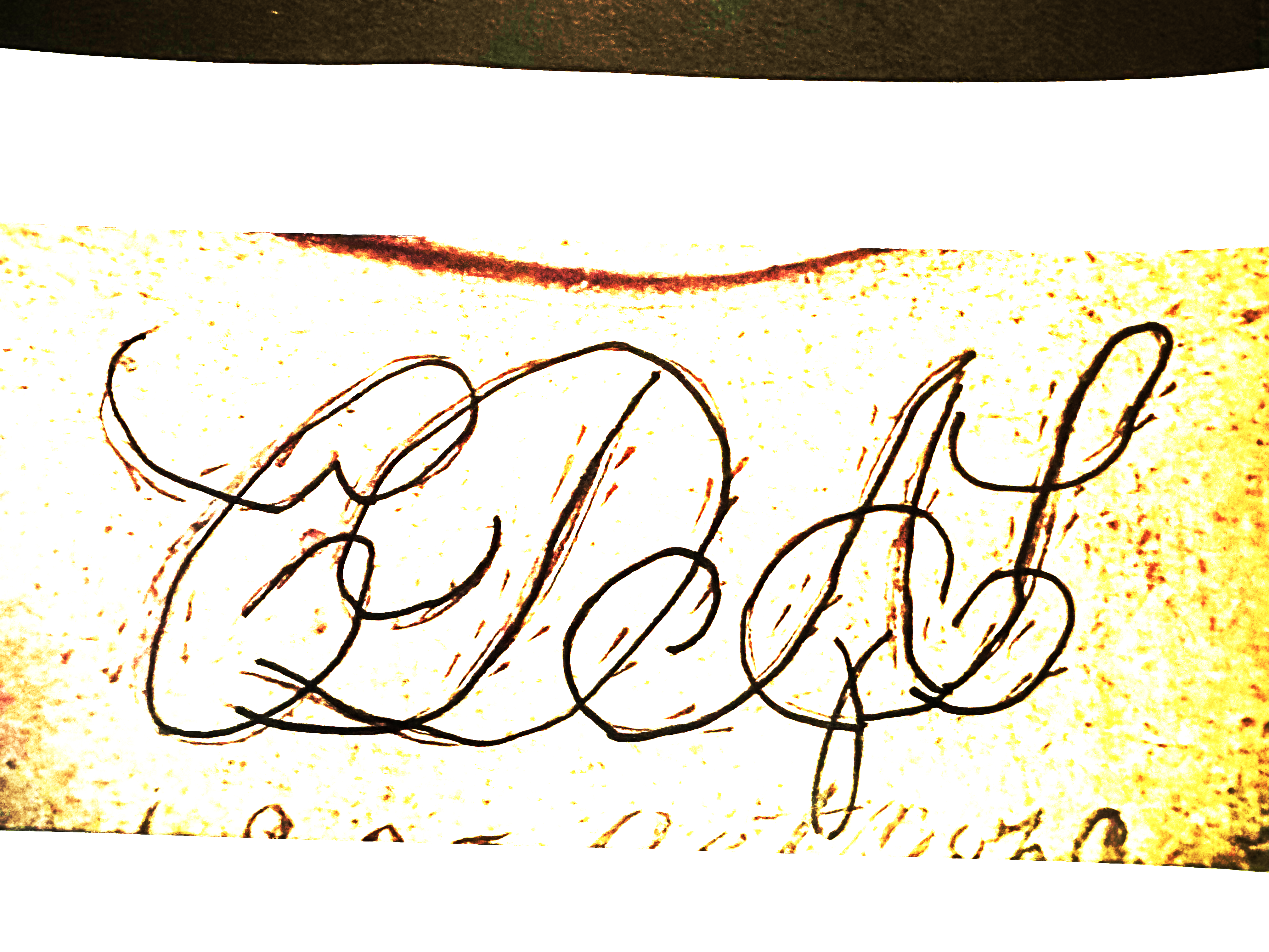 Er staan 3 of 4 letters maar ik raak inmiddels aardig gefrustreerd met het ontcijferen :-). Ik hoopte dat wellicht iemand hier een idee heeft welke letters er staan.