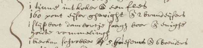 René van Weeren zei op do, 03/06/2025 - 21:57 1 tinne inctkoker ende een fles 160 pont eyser ghewight ende 2 brandeysers 1 slijpbort dambortje saagh boor ende enighe houte rommelingh 1 bierkan schrobber ende 5 baesems ende 6 boenders